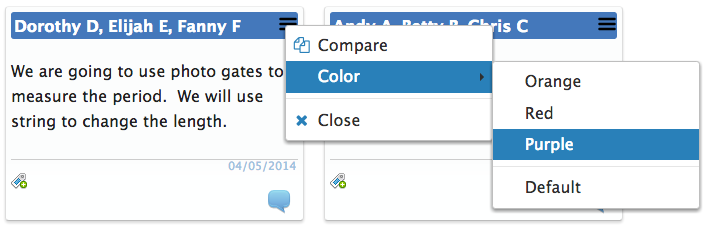 - One can choose from three different colors: orange, red, and purple. Select Default to set the idea back to normal. Through this one can recolor the ideas of a given activity to organize them, or so particular ideas immediately stand out when one looks at them.