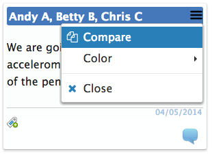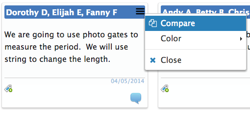 The compare and highlight features – found by clicking on the icon on the top right of an idea – allow users to enlarge one or two ideas to discuss.